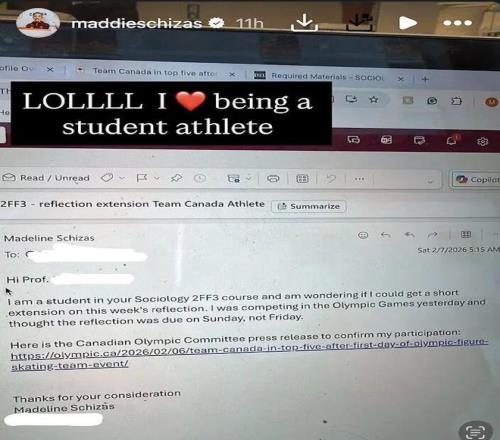 只怕教授不信,她还贴心肠附上了加拿大奥林匹克委员会的一个新闻链接,证明“她确真实参赛”。