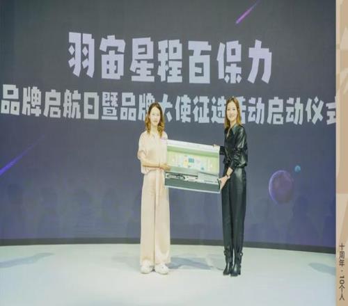 ▲2023年9月22日,上海,“羽宙星程”百保力品牌启航日暨品牌大使征选活动发动典礼(左:聂松,右:李娜)