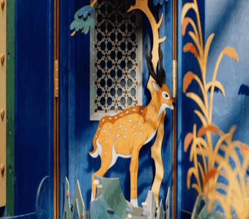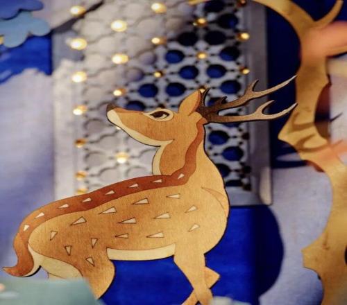 毫无疑问,本年这件著作主打的非遗技艺便是“细木镶嵌”,翻开今后就能看到内中别有洞天的画面