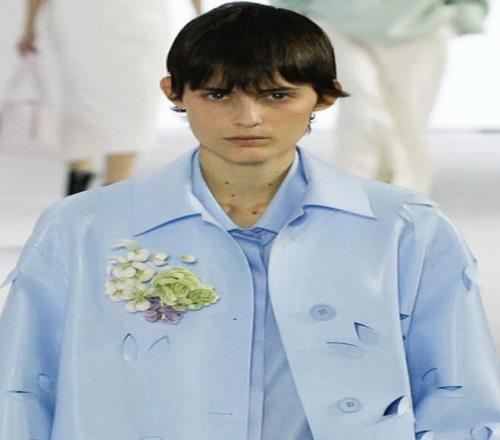 △Dior 2024春夏男装,模特戴的帽子上别着的便是绒花