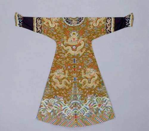 △我国现在大部分缂 丝著作都存在故宫博物院里,图为故宫博物院保藏的香色缂丝金龙夹龙袍