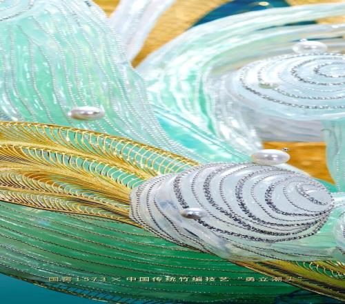 2023年的端午,国窖1573推出了一件名叫 “云龙出水”的著作,用绒花技 艺复原出了龙舟的形象