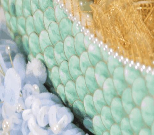 国窖1573那件联名著作,便是使用绒花技艺制造出了一艘龙舟,听说由11个人的团队花了两个月才制造完结。