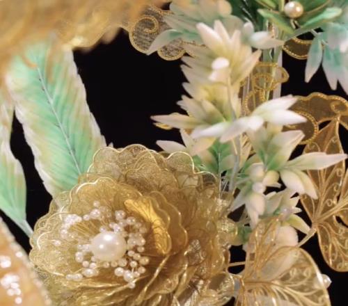 指的是把金、银等贵金属“拉”成细到头发等级的丝,再用各种独门方法,把金属丝做成纹样与立体结构,结合宝石珍珠镶嵌完结著作。