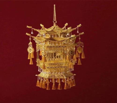 用到了我国传统的琉璃烧制、花丝镶嵌等等技艺制 作,总共1573颗宝石,40颗琉璃宝珠。