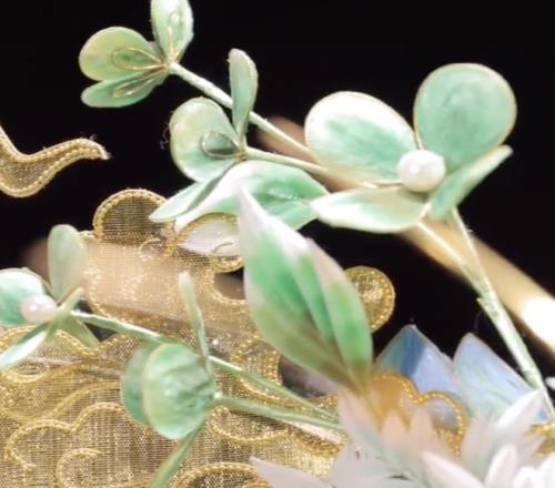 ”绒花“这个词,很形象地描绘出了这种技艺的特色:它用 天然蚕丝和铜丝等作为原材料,拟成花朵的造型 , 一起能复原出花叶“带绒”的奇妙触感。