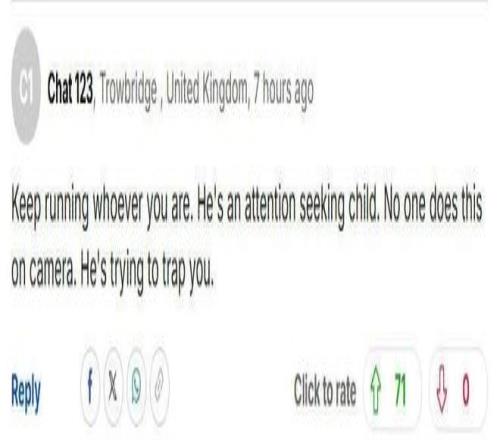 “姑娘,不论你是谁,赶忙跑。这便是个爱出风头的小屁孩。没人会在镜头前做这种事的,他便是在损伤你。”
